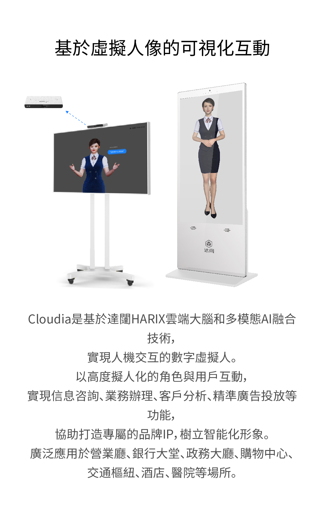 Cloudia是基於達闥HARIX雲端大腦和多模態AI融合技術,